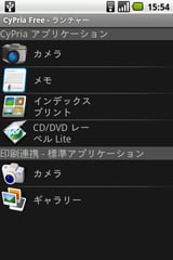 - CyPria - ランチャー画面で cyPrintアプリケーションの [メモ] にタッチする。