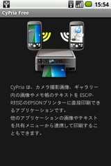 ・アプリケーションの説明画面が表示され、数秒後に CyPria - ランチャー画面が表示されます。